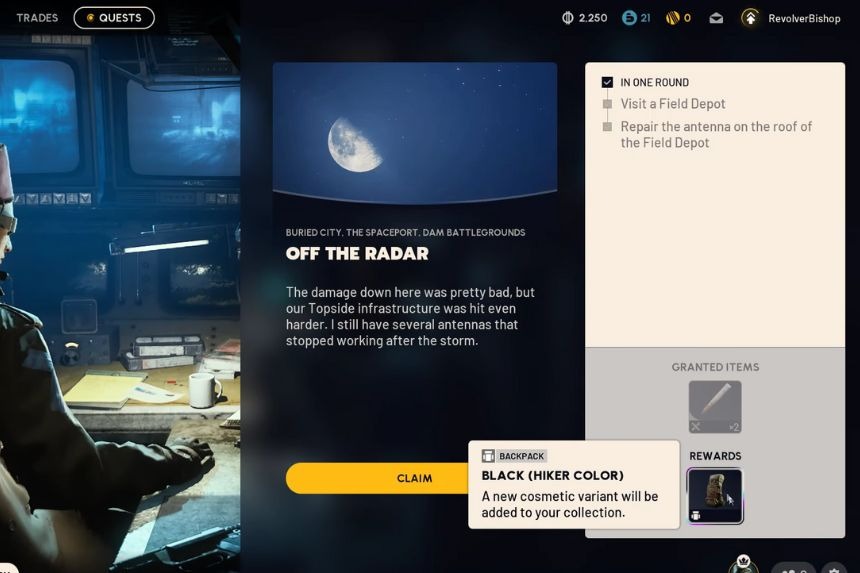 Once the repairs are done, head over to the closest extraction elevator to exit safely. If you are lucky enough to survive the quest will be completed. However, if you get killed after the repairs, you’ll have to repeat the mission during a different raid. After finishing the “Off the Radar” quest in ARC Raiders, you’ll get a reward from Shani, a Black Hiker-style Backpack cosmetic.