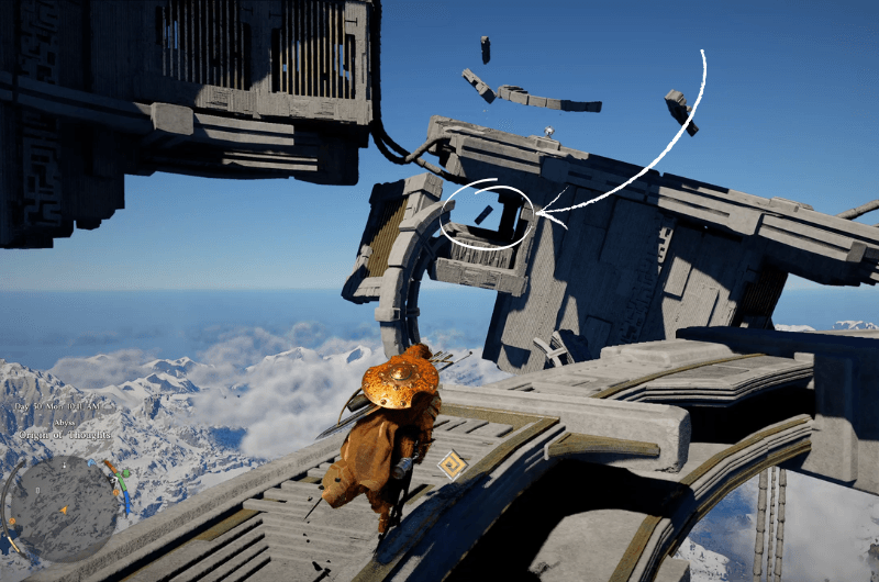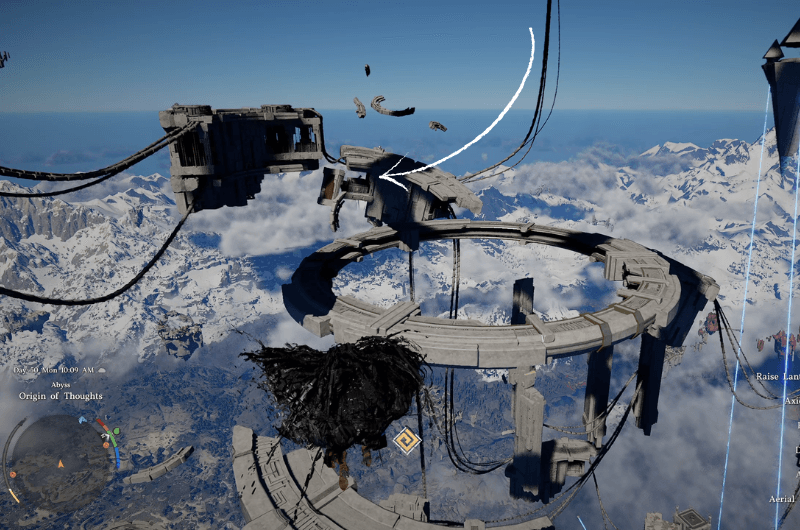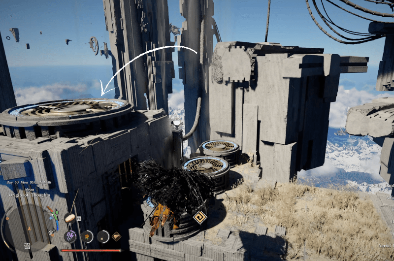 From the Abyss Nexus, turn left and you’ll notice a few wind turbines that you need to use to gain some altitude.