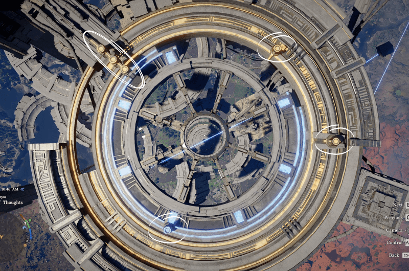 If you look at these rings carefully, you’ll notice a knob on each of the rings. And also do you see the 3 knobs that are highlighted in the above picture, you just need to align those individual knobs of each ring under those 3 knobs that are already in place. This will restore power to the central Abyss Core.