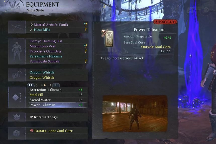 - Yin Slot: Mezuki Soul Core. It is used for the Wind Blast Talisman. It adds a shockwave to strong attacks for extra damage.