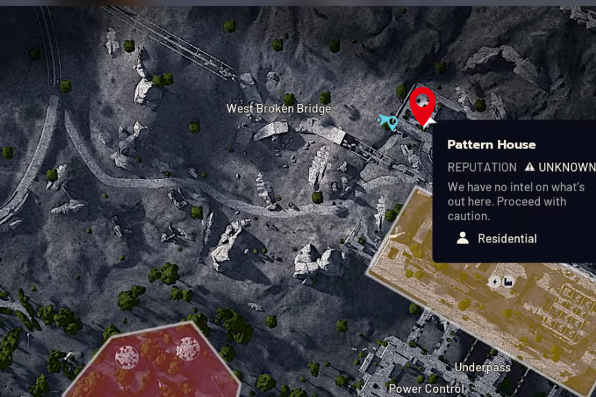 For this quest, start by heading to the Pattern House, which is a residential building located on the northern side of The Dam map. Once you arrive, go inside through the ground-floor entrance.