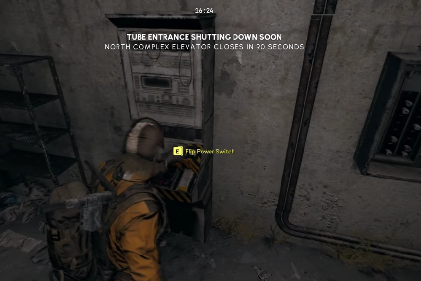 As you step in, look for a small room near the staircase, that’s where you’ll find the power switch. Interact with it to activate it, then use the nearby zipline to make your way up to the roof.