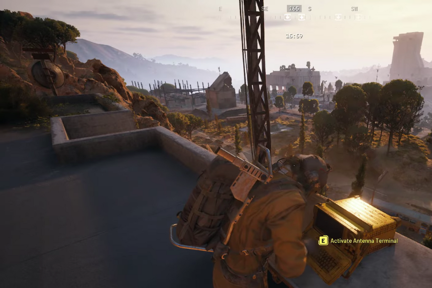 Once you reach the rooftop, head toward the yellow console and interact with it to activate the antenna terminal. That’ll complete the quest.