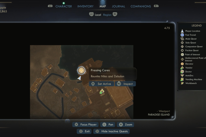 Unlike most side quests, Pressing Cares doesn’t originate from a map marker or NPC hub — Niles needs to bring it up himself. To unlock it, have him actively be in your party while you explore.