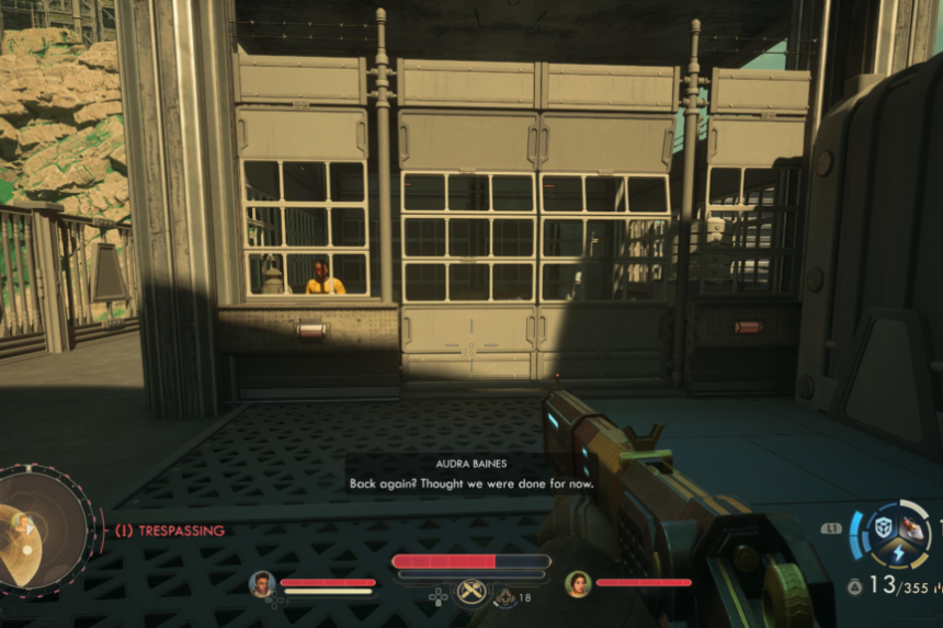 Make your way to the rear of the pad to locate the Subversives’ holding cell. The place is uncannily quiet, but when you approach the cell, you’ll see that only one member — Audra — made it through.