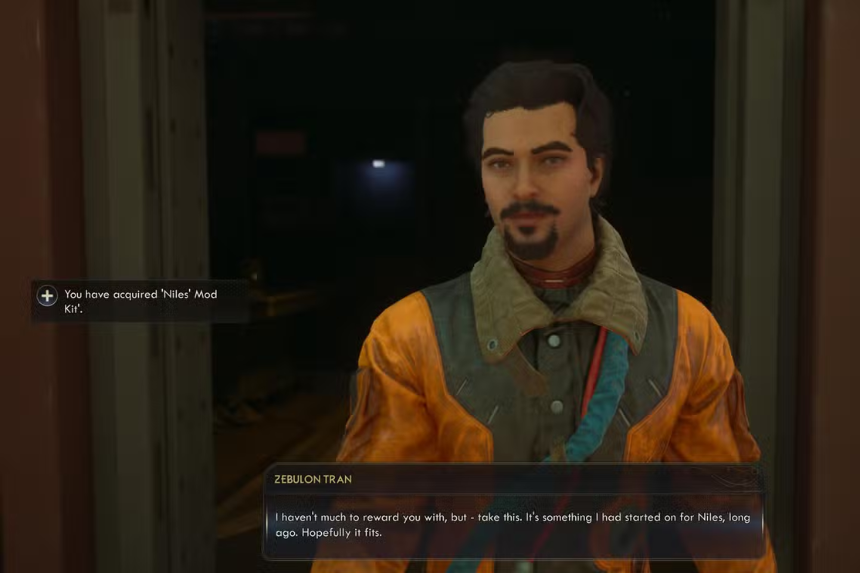 Zeb is distraught but accepts that Audra and the others did not die in vain — they succeeded in bringing back the cipher. With that, he makes up with Niles and gives him an old Mod Kit he had kept for him years ago.