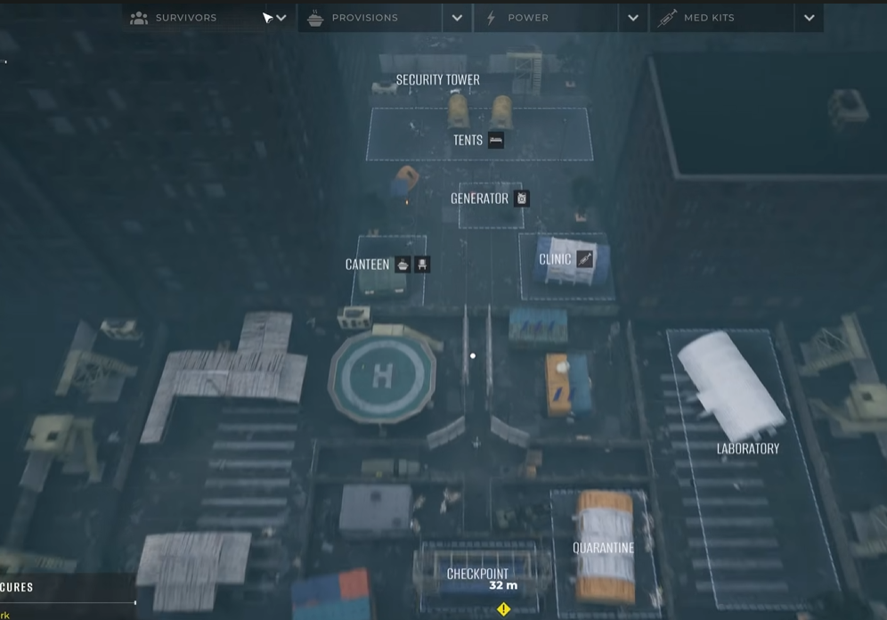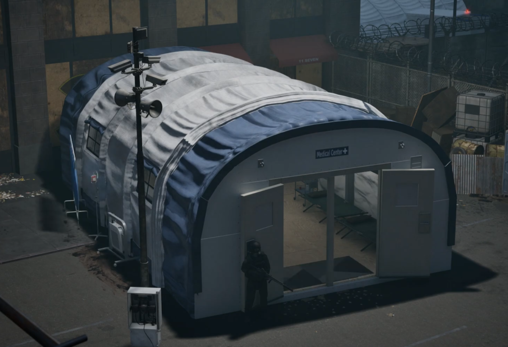 A medical facility where survivors are treated and where medical supplies are stored and used. It supports the health of quarantined survivors and can be upgraded to hold more supplies or improve treatment efficiency.