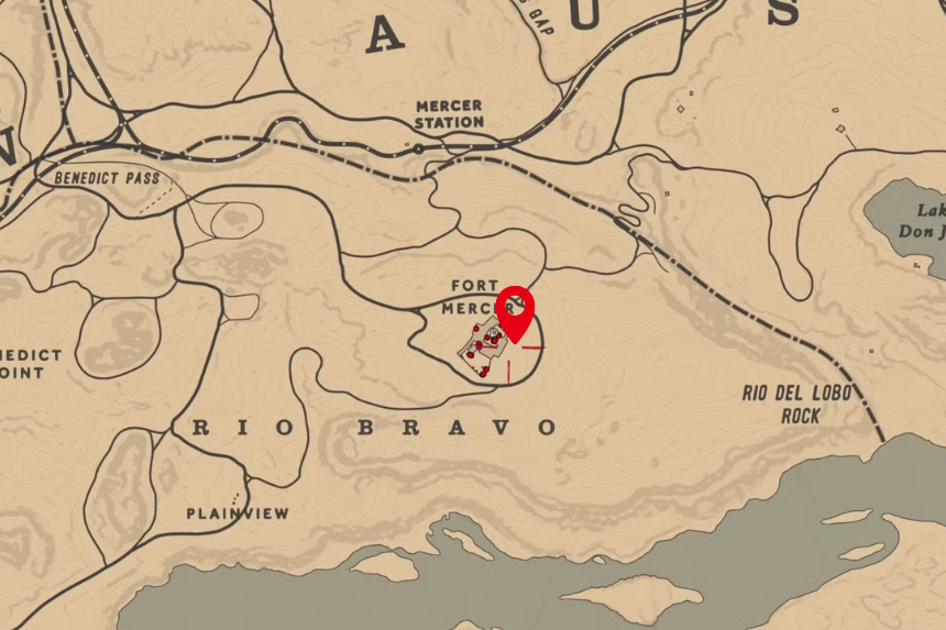 Head south of Armadillo and you’ll come across Fort Mercer, controlled by the Del Lobo Gang. This fort becomes famous later on in 1911 as Bill Williamson’s base, but for now, the Del Lobos use it to stash guns, loot, and anything else they can steal.
