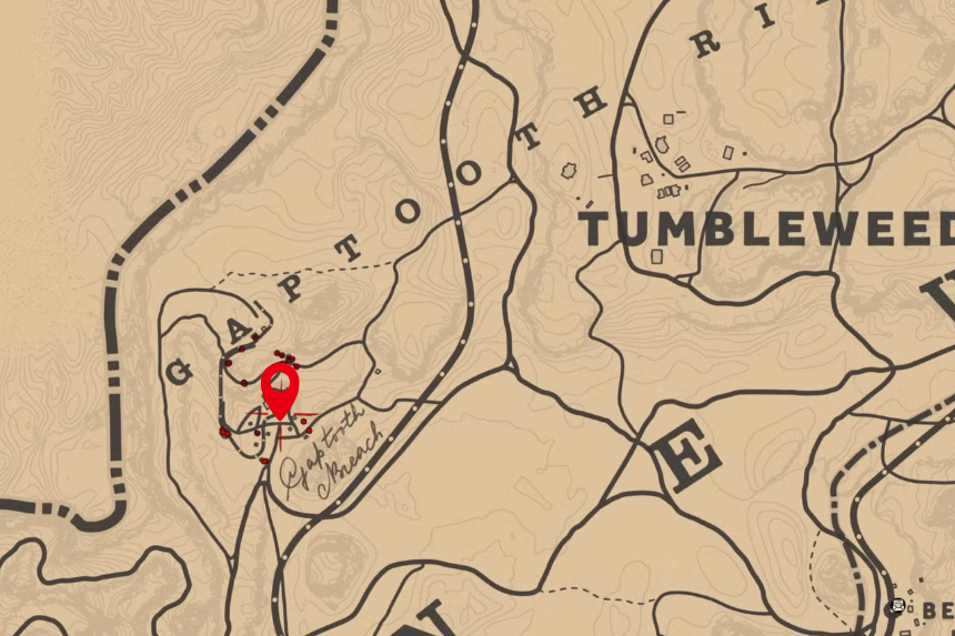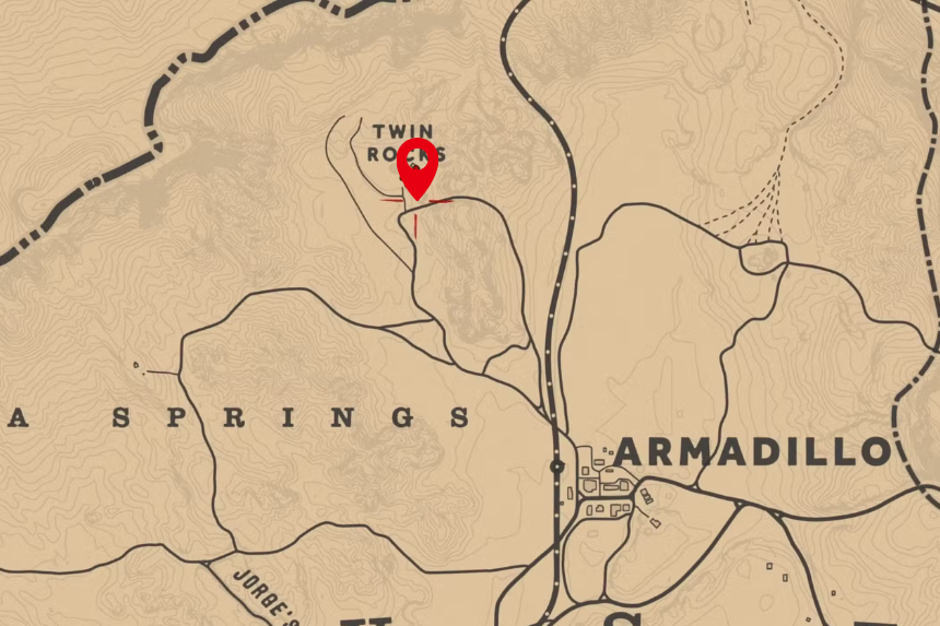 North of Armadillo is Twin Rocks, a small Del Lobo hideout hidden among the stone formations. It’s not a massive base, but the gang still uses it to hold territory in the area.