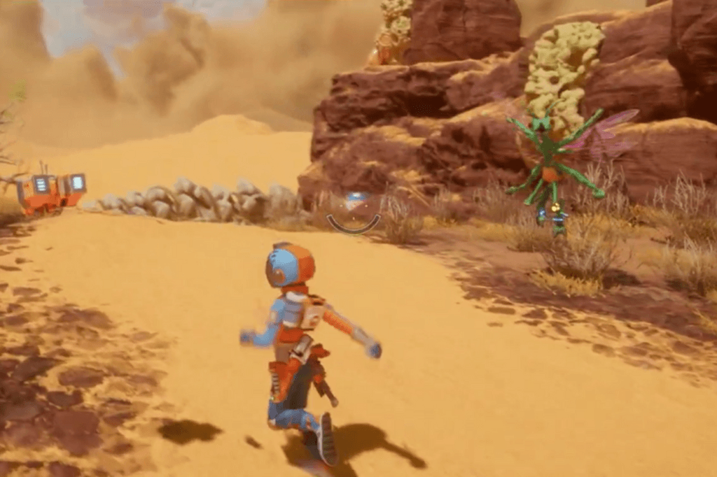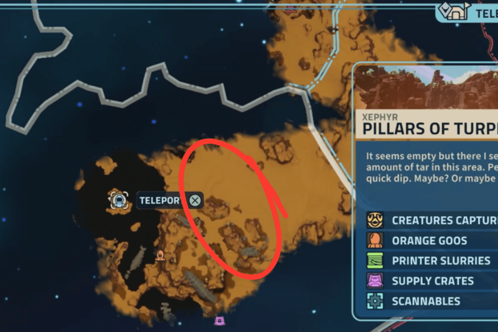 To move forward you’ll need the Reflect-o-matic Hand Gel to bounce projectiles back. But before you can get that, you’ll need to track down and capture an Alpha Vaperon. Teleport back to your starting point in the desert and head southwest to the Pillars of Turpitude. There, you’ll find a crate and a bunch of enemies.