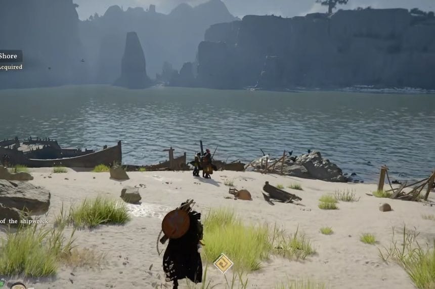 First, you need to read the memories of the shipwreck. Go to the marked location on the map and examine the surroundings carefully. When you reach the beach, you will notice a few enemies along with a small orange search area showing up on your minimap. To start searching in the area, it’s best to deal with the enemies first so you can explore the area safely without any interruptions.