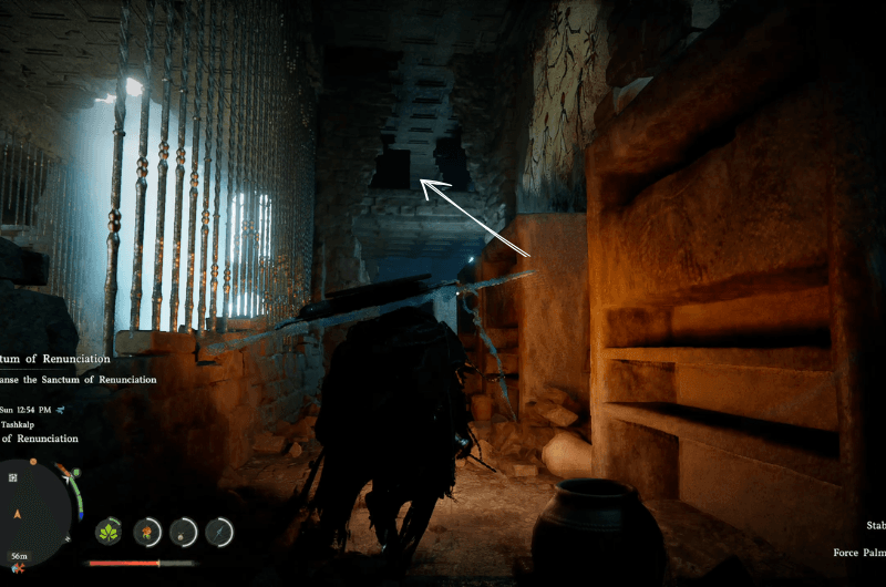 From where the sanctum is, make your way to the marked room shown in the above image and you’ll find yourself with the sidewalls which have been barred with fences in the room.