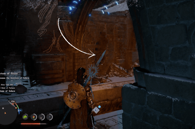 Head to the marked location shown in the above map which is just a bit away from the letter “A” and you’ll reach the Sanctum of Solace. Now, this sanctum is not only under Antumbra’s enemies but it also has a boss fight with the Antumbra’s Staff. You’d have to defeat the Antumbra’s Staff and the lackeys before you start cleansing the sanctum.