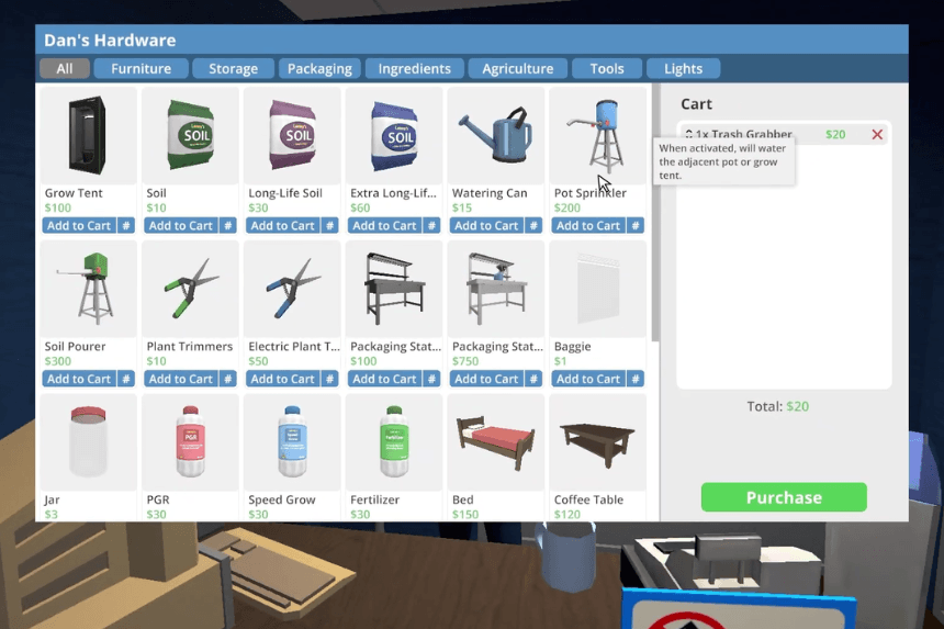 If you want to get the Soil Pourer in Schedule 1, you’ll first need to reach Hoodlum II Rank. Once you’ve unlocked that rank, head over to the hardware store and open up the catalogue. The Soil Pourer costs $300, so just add it to your cart and check out to buy it.