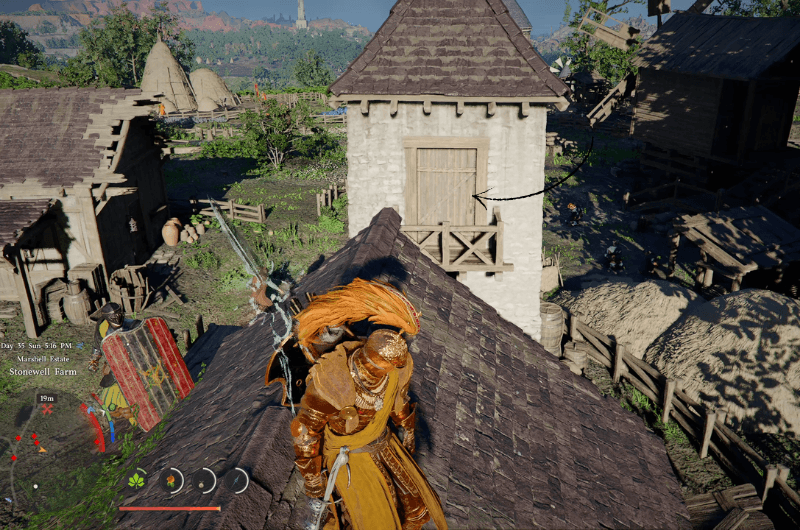 Head to the Stonewell Farm in Demeniss and try to identify the area at the farm that is shown in the above second image and go through the door shown. Be careful while entering as there’s a false ground in front of the treasure chest. You’ll find the Scorchflame Plate Helm inside the treasure chest.