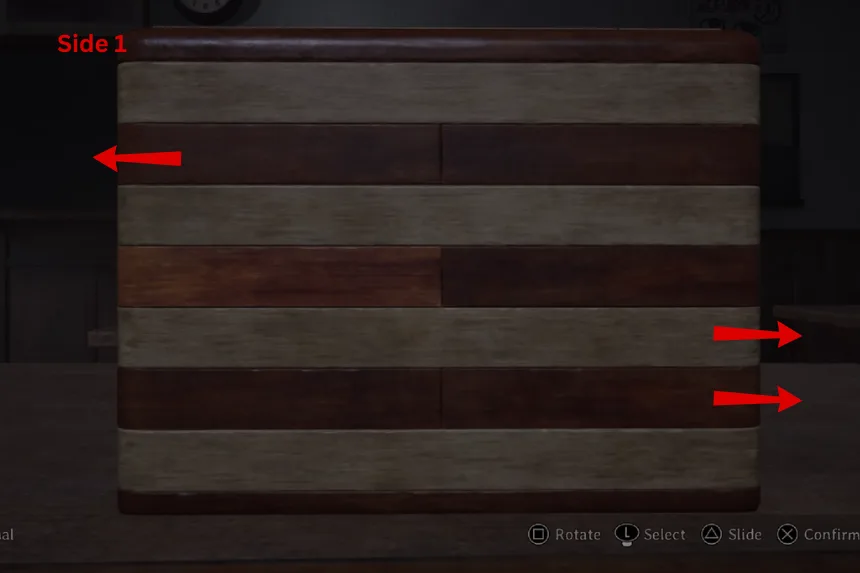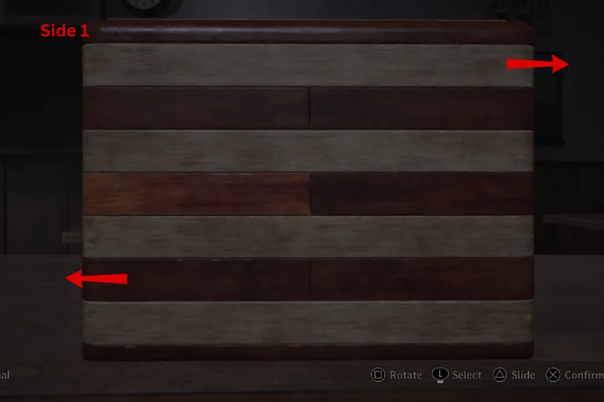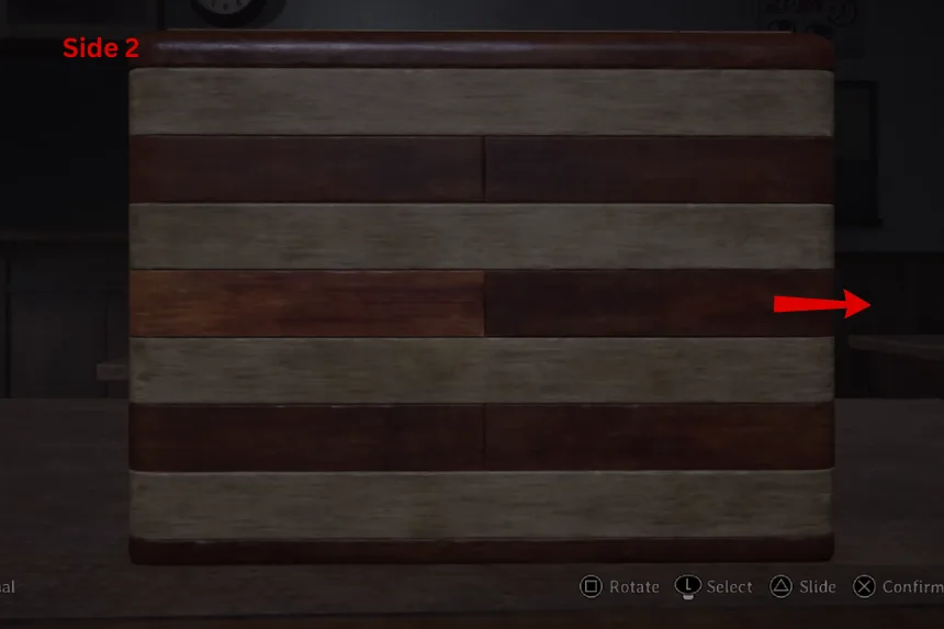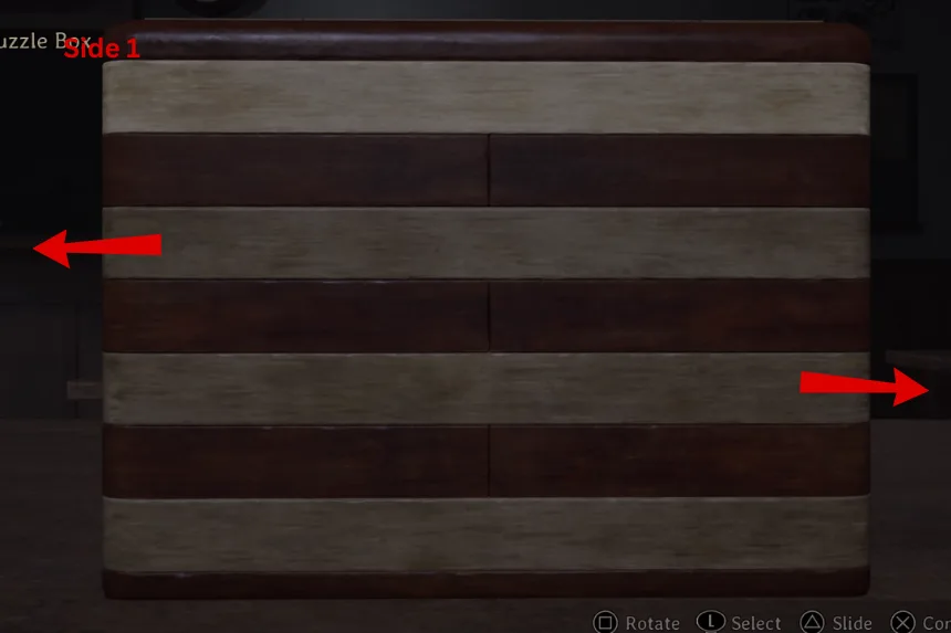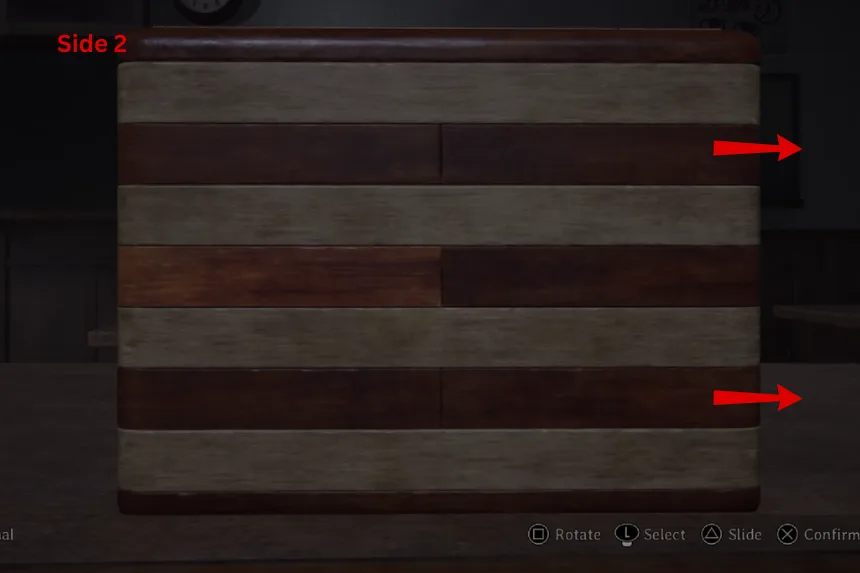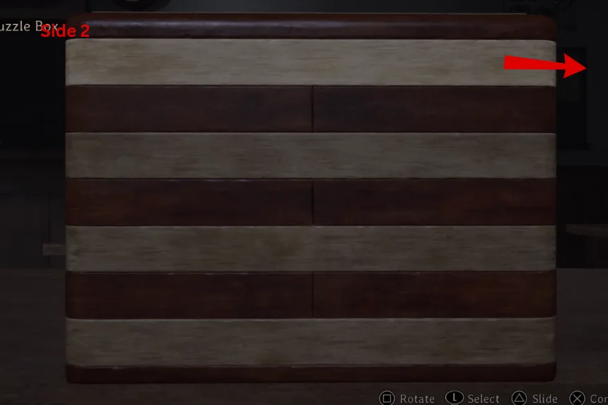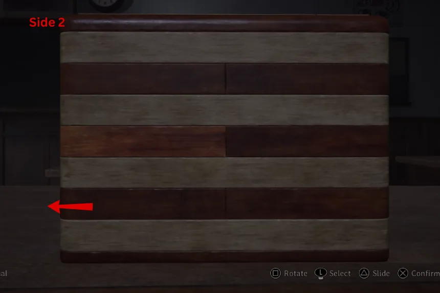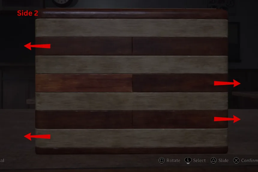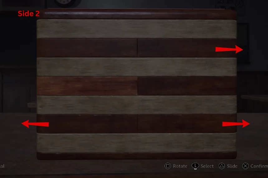 Next, the puzzle wants you to show all of the journals. On Side 1, slide the panels in the second and third rows. On Side 2, slide the panel in the second row. This will reveal the next clue. Follow the images provided above to open the second box.