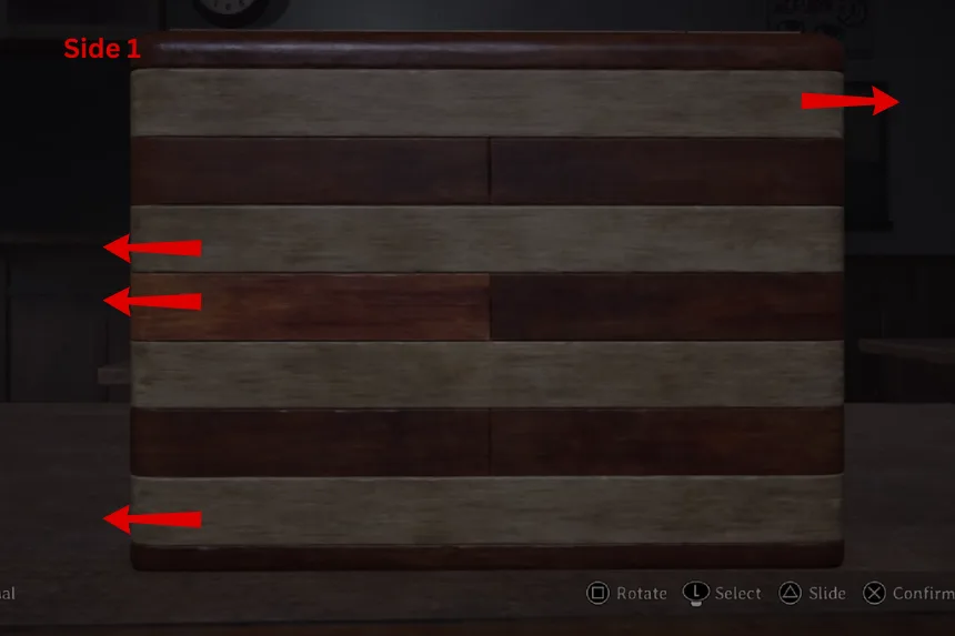 The next part is to reveal all of the journals. On Side 1, slide the top right, middle left, and bottom left panels. Then on Side 2, slide the middle right and bottom right ones. This will unlock the second tier and give you the final clue. Follow the images provided above to open the second box.