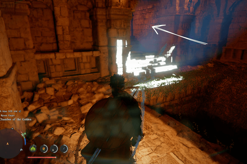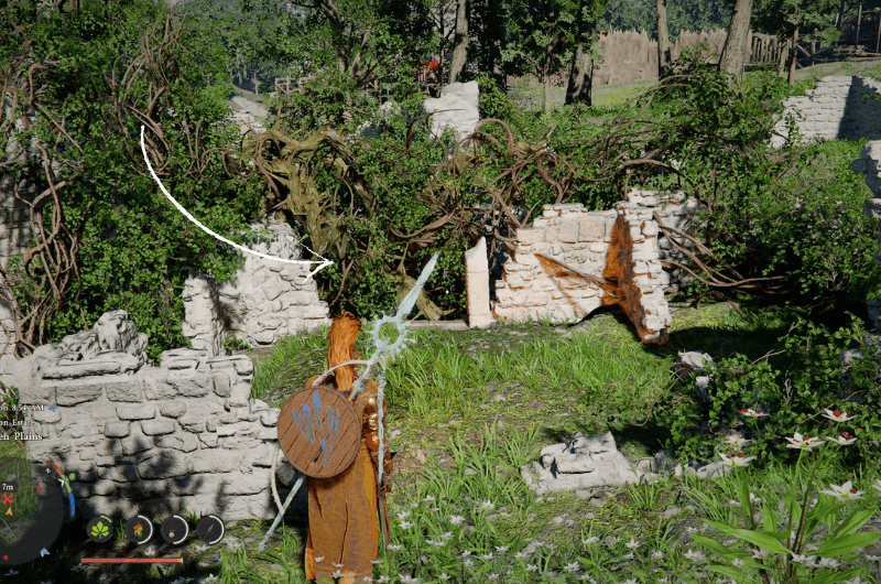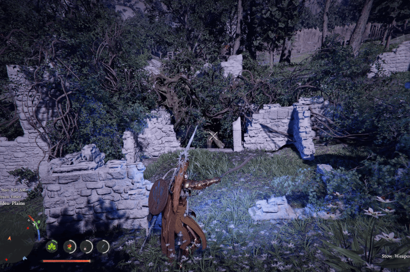 Head to the above location on the map shown in the above first image which is north of Demeniss at the Byron Estate. Try to identify the ruins shown in the above second picture, it’ll be covered with roots.