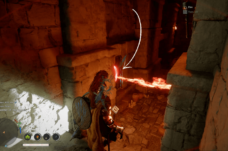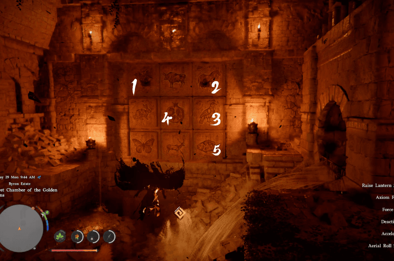 Once you enter the chamber, go inside the room shown in the above first image and you’ll see a mural of Demeniss map on the wall which also has some “X” marks on the map. If you visit the “X” marked places then you’ll find the clues required to solve the puzzle. For players who just want to solve the puzzle and claim the abyss cresset, you’ll find the solution below.