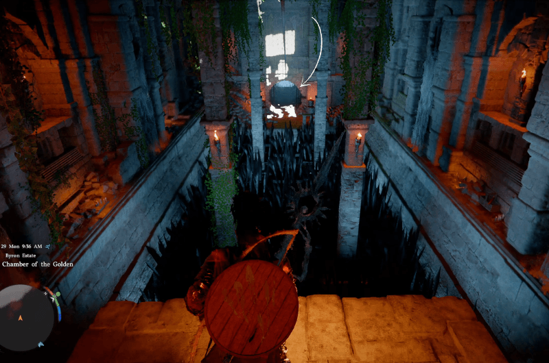Then go through the entrance down the stairs but be careful as there is a fire trap at the bottom of the stairs, you can crouch or use double jump to get past the trap and then take right, you’ll see a door that leads to the chamber of golden plain.