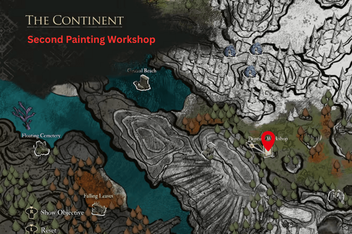 The first Painting Workshop is on a small island northeast of Stone Wave Cliffs. Watch out for it since it’s easy to miss. The second one is northwest of Forgotten Battlefield, so go in that direction. The third workshop can be found on a floating island east of Sirene and Sirene’s Dress. You’ll have to use Esquie’s flying power to get up there, so be sure to have it unlocked before attempting.