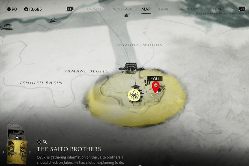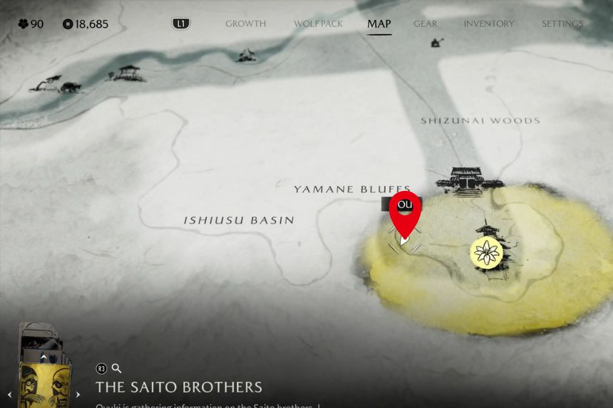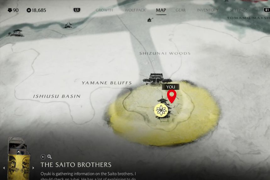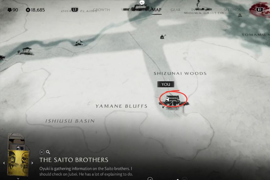Head to the southern part of Shizunai Woods in the Tokachi Range, where you’ll find the Tominaga Estate. Climb up the steps and pass through the large gate to start your journey. A short cutscene will play where Ugetsu stops you.