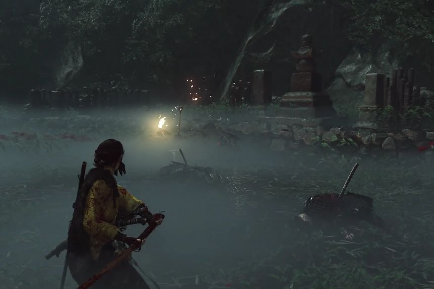 In the misty clearing ahead, you’ll finally face General Tominaga in battle. Once you defeat him, climb up the slope to find the Spider Lily Armour resting on a grave marker. Read the note beside it to claim the armour and complete The Spider Lily Mythic Tale.