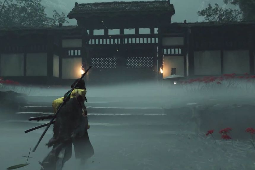 Stand facing away from the locked gate, and look to your left; you’ll see a pagoda nearby. Head behind it and open the chest there to find the Pagoda Key. When you do, a brief cutscene will trigger featuring the spirit of General Tominaga.