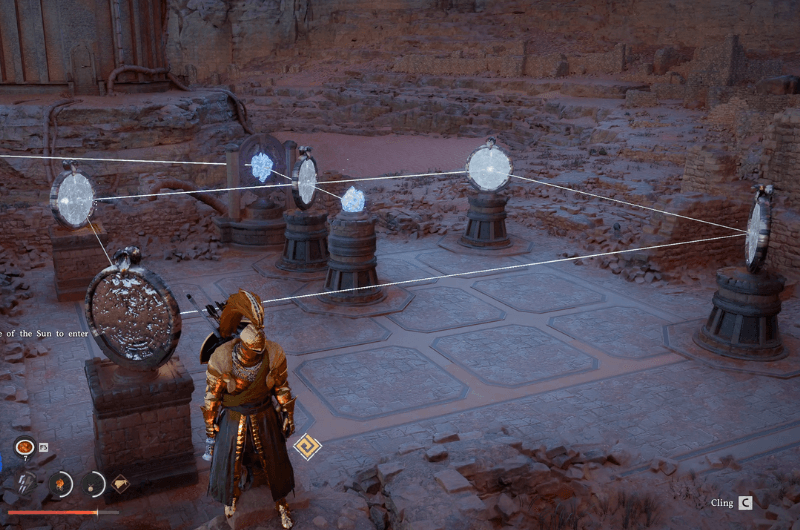 After the mirrors are positioned correctly, the light is going to reflect on the gem which will redirect the light to the next mirror and light puzzle which is located quite opposite to the spire ( south of spire ), and if you’re having any difficulties to locate it, then just follow the light ray.