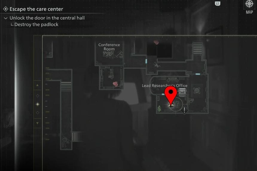 When you reach the East Wing, you can collect the map and go to the Lead Researcher’s Office. Inside, you will find a locked puzzle and some notes that tell you to get corrosive from the Conference Room. Go to the conference room and get corrosive and be careful as there will be powerful enemies in the area.