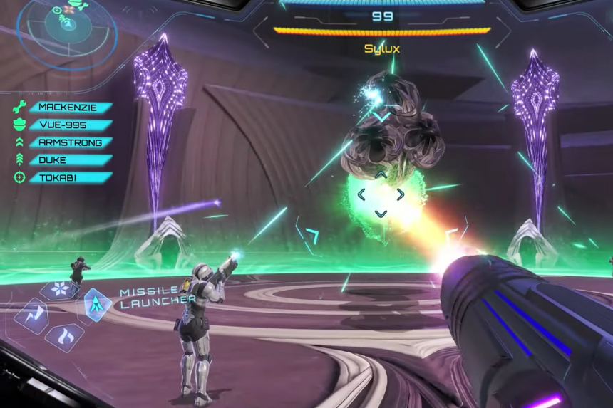 The boss fight is split into three phases. In the first phase, you will battle Sylux together with your Federation teammates. In the second phase, you’re pulled away from them and dragged into a psychic tunnel, where you have to fight alone.
