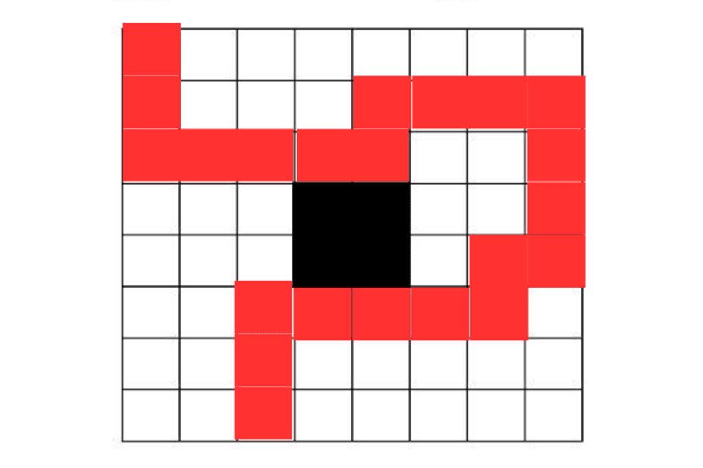 - Forward two, right one, forward two, left three, back one, left four, and then just go forward to finish.