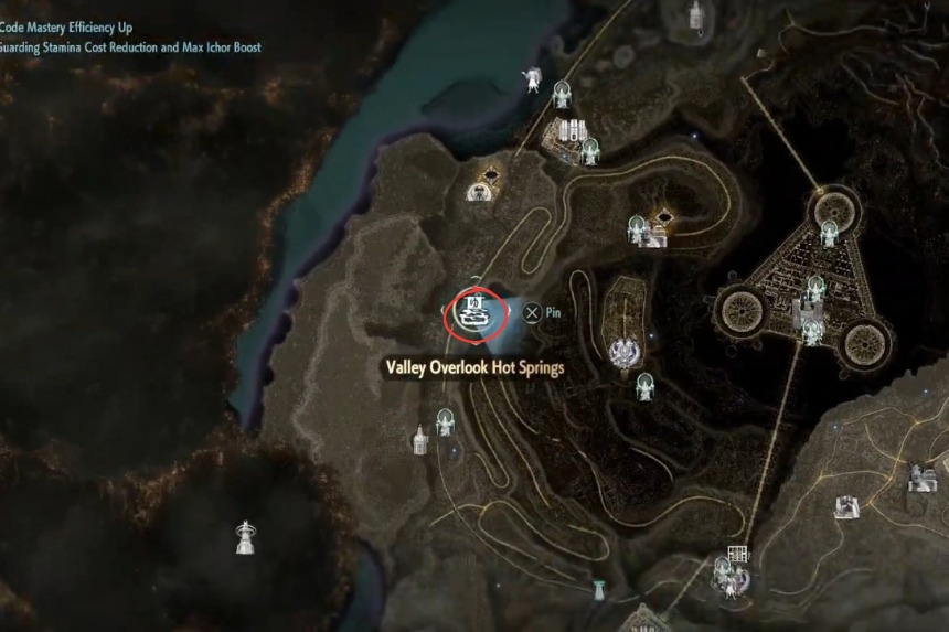 There’s only one hot spring for Corroded Scar, and that is the Valley Overlook Hot Spring. Head over to the location marked on the map above and go to the hot spring. Going there is pretty straightforward, but you’ll need to deal with enemies here, so be prepared.
