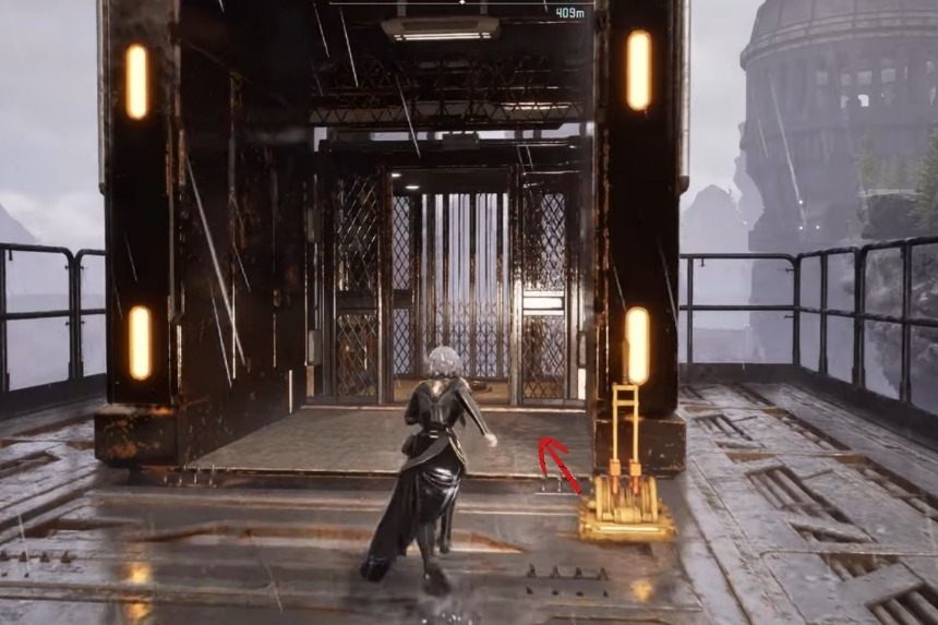 Inside the Northern Watch Fort, head right and use the ladder to go up. Use the entrance on the left to reach a huge room where you’ll need to jump down to reach the elevator. Use the elevator to go up and reach the terrace area, where you’ll find a room with the jammer in it.