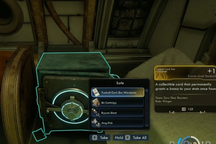 Opening it nets you a handful of helpful early-game items: Tossball Card: Eva Wierzbicki – boosts your Toxicity Crash Threshold by +1, 314 bits, 2 Bypass Shunts etc.