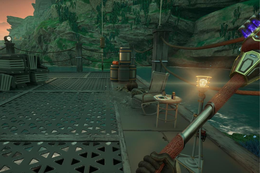Search the dock southeast of the Vox Relay. You’ll see this issue placed on a table overlooking the water.