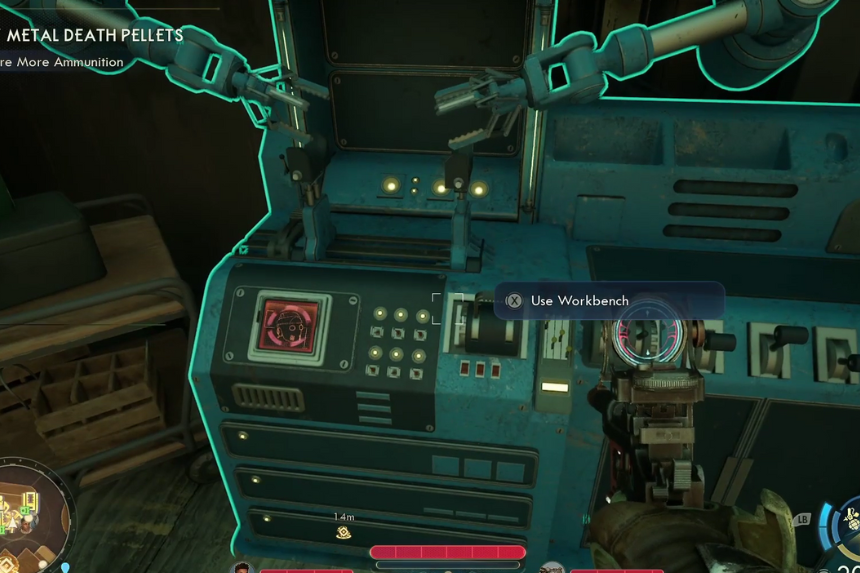 You can also make ammo the classic way by using the Workbenches you find around Arcadia. These stations let you craft, upgrade, recycle gear, install mods, and apply party upgrades. Unlike Niles’ handy field-tinkering skill, you actually have to walk up to these physical benches to use them.