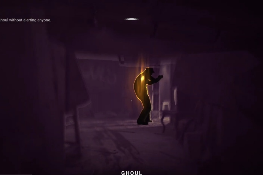 - Wait until the ghoul on the right turns around, then take him out silently.