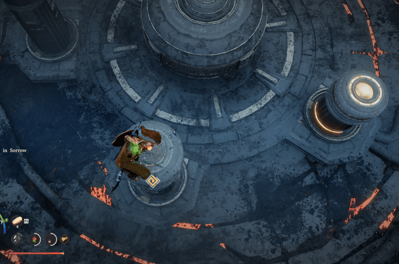 These pillars have a large device at the center, at first sight you might not think of it much but there is a sneaky mechanic that you can use to push the pillars down.