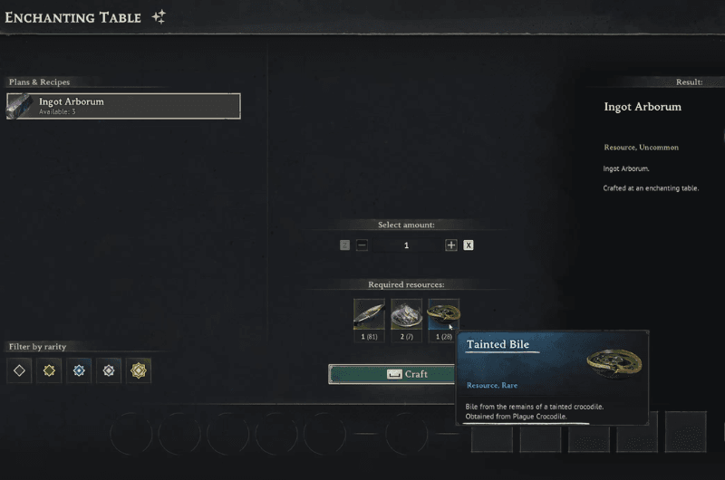 Convert the plague wood to Essence Arborum through the smelting furnace. Then build an Enchanting Table and interact with it. After you get the essence arborum, you’ll get an option to make Ingot Arborum in the enchanting table, you’re going to need Metal Mire Ingot and Tainted Bile which can be obtained by harvesting plague crocodile in the cursed swamps.