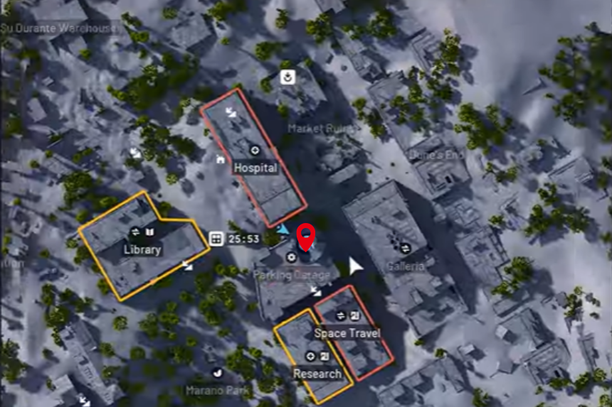 For the final objective, head to the Buried City map and make your way to the Parking Garage, which is north of the Space Travel building. Break through the garage door and take the zipline down to the Raider Camp below. Once you’re there, search and loot any two containers in the area. If the quest doesn’t update, explore deeper into the camp and check more containers. Be careful, as this place is filled with enemies.