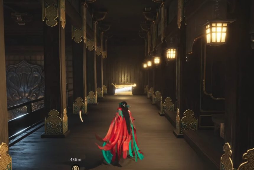 Start by scaling the smaller statues and beams to reach a ladder that leads higher. Neutralize enemies on balconies along the way, or use Veil of Stillness, which can be learned at Moonveil Peak in Qinghe, to move safely. Continue ascending until you can leap onto the statue’s head. From this vantage point, turn and use Celestial Seize to reach the chest. Inside, you will find Soaring Spin and additional rewards.