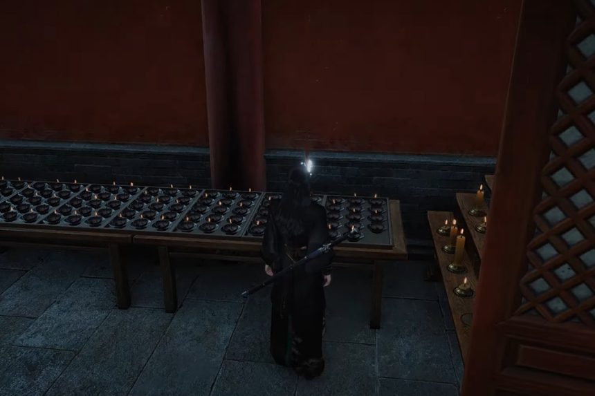 Unlike some of the trickier exploration quests in the game, this one is fairly relaxed. Your job is to assist a monk who’s struggling to gather his disciples and set their lamps correctly around the temple. The game points you toward every step, so there’s no real room to get lost. There is one slowdown, though: