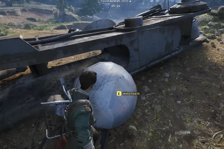 When you get there, look around the wreckage until you spot a round, spherical device. Go up to it and interact to start investigating. It’ll take a few seconds for the scan or inspection to finish. Once that’s done, you can move on to the next part of the mission.