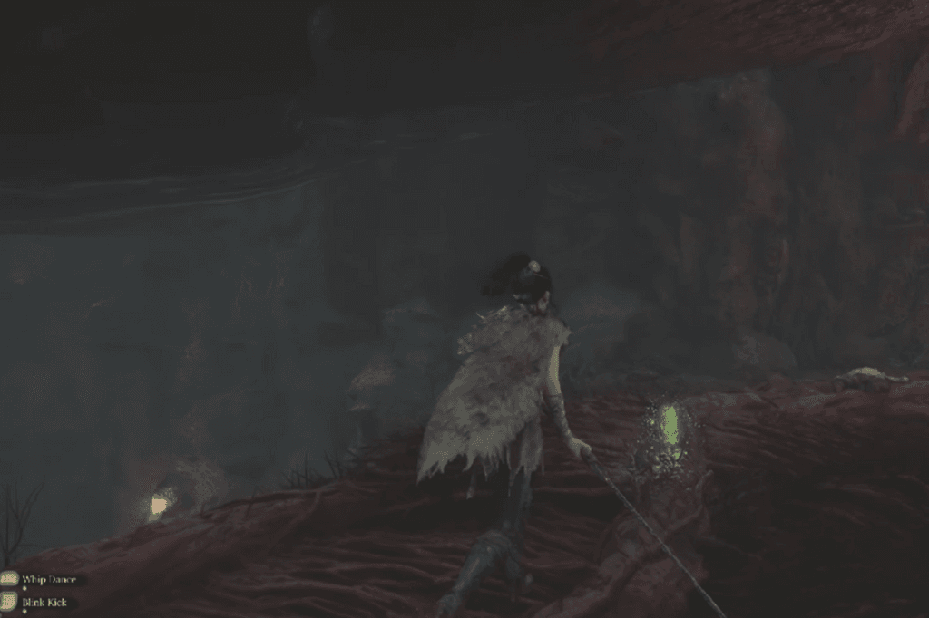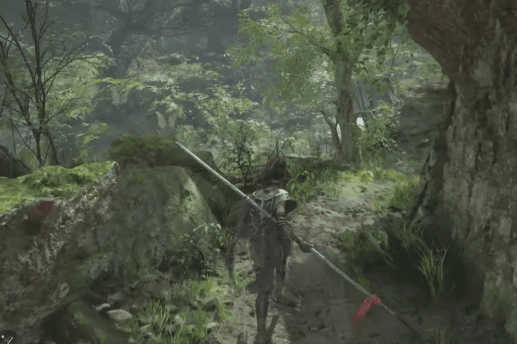 Continue playing through the region until you encounter the Red-Clad Lady. Then turn right and down the sloping route. When the Bamboo Shoot reaches a puddle of blood at the end, it will dart off and disappear, so if you want to catch it, act quickly.