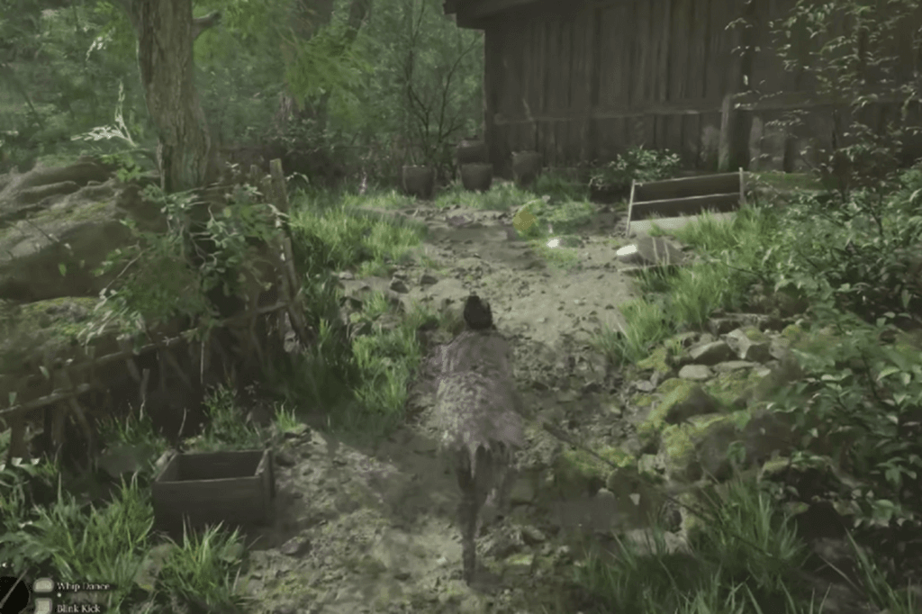 Proceed through the barn on your left after battling the fire-breathing demon in the village yard. Another Bamboo Shoot creature will appear in the garden.